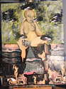 In vielen Farbtechniken. Hauptsächlich Öl/Acryl auf großformatiger Leinwand. Aquarell und Mischtechniken, Collagen, digitale Arbeiten, Grafik auf Acryl ...